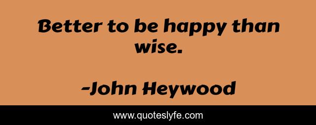 This page presents the quote "Better to be happy than wise.". Author of this quote is John Heywood. .