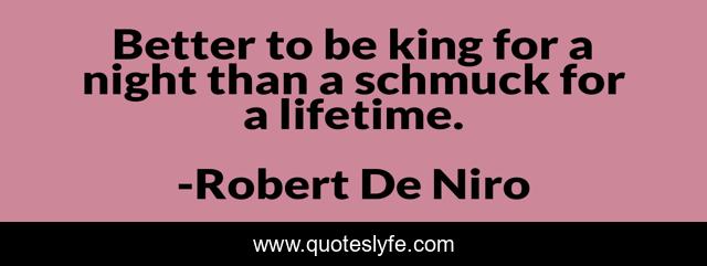 This page presents the quote "Better to be king for a night than a schmuck for a lifetime.". Author of this quote is Robert De Niro. This quote is about yous, thank, closures,.