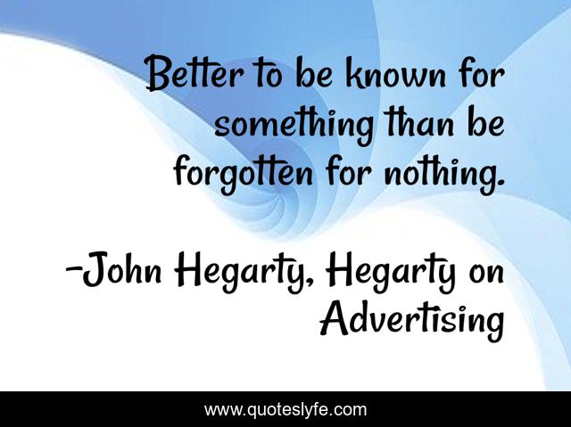 This page presents the quote "Better to be known for something than be forgotten for nothing.". Author of this quote is John Hegarty, Hegarty on Advertising. This quote is about branding, work, brand-recognition, advertising, marketing,.