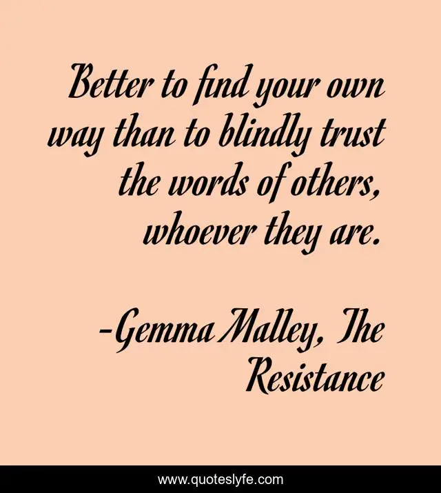 This page presents the quote "Better to find your own way than to blindly trust the words of others, whoever they are.". Author of this quote is Gemma Malley, The Resistance. .