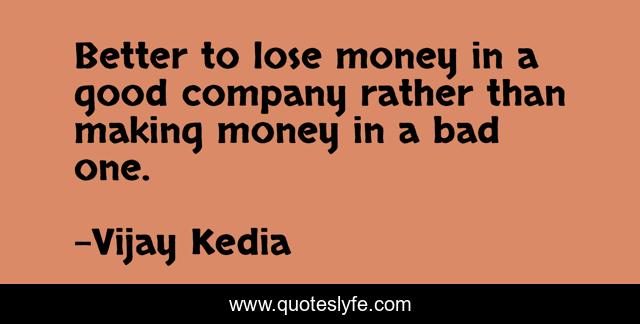 This page presents the quote "Better to lose money in a good company rather than making money in a bad one.". Author of this quote is Vijay Kedia. This quote is about business-success, business-advice, business, inspirational, enthusiasm, business-culture,.