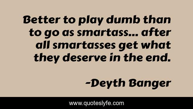 This page presents the quote "Better to play dumb than to go as smartass… after all smartasses get what they deserve in the end.". Author of this quote is Deyth Banger. This quote is about deserve, smartass, end, the, in,.