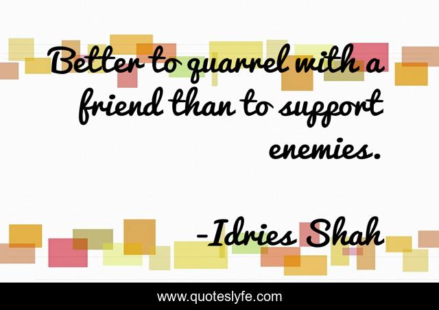 This page presents the quote "Better to quarrel with a friend than to support enemies.". Author of this quote is Idries Shah. This quote is about proverb, ethics, sufis, sufism, wisdom,.
