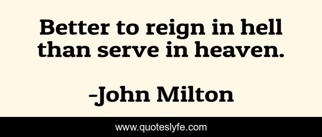 "John Milton Quotes." Quoteslyfe.com, 2025. Sat. 06 Dec. 2025. <https://www.quoteslyfe.com/quote/Better-to-reign-in-hell-than-serve-260064>.