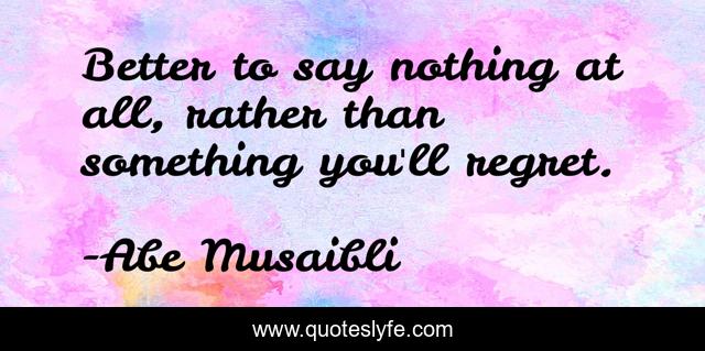 "Abe Musaibli Quotes." Quoteslyfe.com, 2025. Fri. 05 Dec. 2025. <https://www.quoteslyfe.com/quote/Better-to-say-nothing-at-all-rather-90414>.