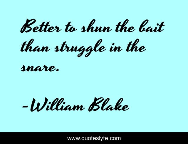 This page presents the quote "Better to shun the bait than struggle in the snare.". Author of this quote is William Blake. This quote is about enthusiasm, common-sense, inspirational, wisdom,.