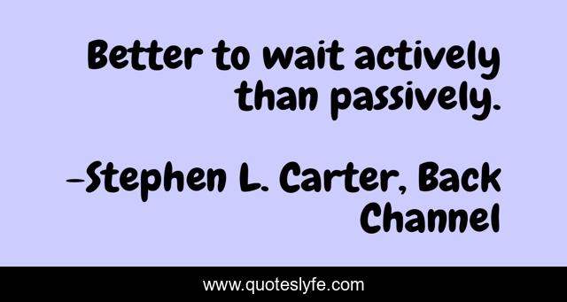 "Stephen L. Carter, Back Channel Quotes." Quoteslyfe.com, 2025. Fri. 05 Dec. 2025. <https://www.quoteslyfe.com/quote/Better-to-wait-actively-than-passively-193060>.