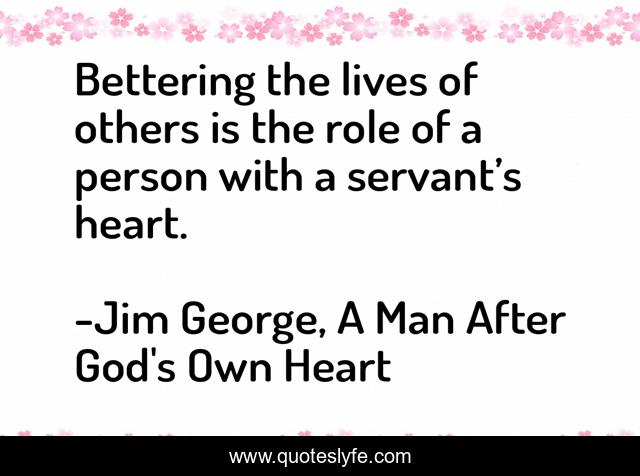 This page presents the quote "Bettering the lives of others is the role of a person with a servant’s heart.". Author of this quote is Jim George, A Man After God's Own Heart. This quote is about heart, christian, servant, god, rolemodeling, jim-george,.