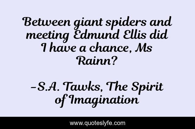 "S.A. Tawks, The Spirit of Imagination Quotes." Quoteslyfe.com, 2025. Fri. 05 Dec. 2025. <https://www.quoteslyfe.com/quote/Between-giant-spiders-and-meeting-Edmund-Ellis-126083>.