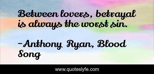 This page presents the quote "Between lovers, betrayal is always the worst sin.". Author of this quote is Anthony Ryan, Blood Song. This quote is about blood-song, lovers, betrayal, vaelin,.