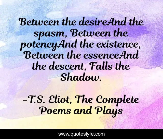 "T.S. Eliot, The Complete Poems and Plays Quotes." Quoteslyfe.com, 2025. Fri. 05 Dec. 2025. <https://www.quoteslyfe.com/quote/Between-the-desireAnd-the-spasm-Between-the-207880>.