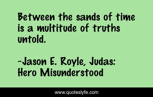 This page presents the quote "Between the sands of time is a multitude of truths untold.". Author of this quote is Jason E. Royle, Judas: Hero Misunderstood. This quote is about judas-betrayed-jesus, christian, judas-kiss, philisophical, religious-faith, christian-fiction, judas-iscariot, history-of-religion, biography,.
