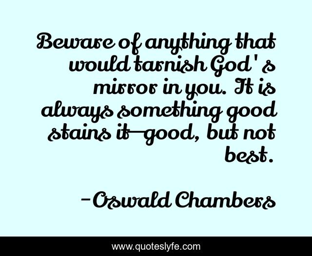"Oswald Chambers Quotes." Quoteslyfe.com, 2025. Sat. 06 Dec. 2025. <https://www.quoteslyfe.com/quote/Beware-of-anything-that-would-tarnish-God-255082>.