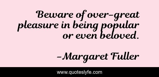 This page presents the quote "Beware of over-great pleasure in being popular or even beloved.". Author of this quote is Margaret Fuller. This quote is about self, confidence,.