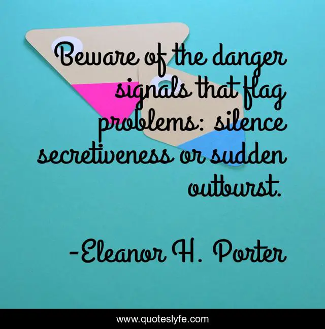 This page presents the quote "Beware of the danger signals that flag problems: silence secretiveness or sudden outburst.". Author of this quote is Eleanor H. Porter. .