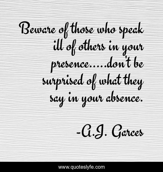 "A.J. Garces Quotes." Quoteslyfe.com, 2025. Mon. 08 Dec. 2025. <https://www.quoteslyfe.com/quote/Beware-of-those-who-speak-ill-of-38026>.