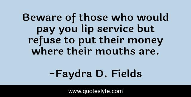 This page presents the quote "Beware of those who would pay you lip service but refuse to put their money where their mouths are.". Author of this quote is Faydra D. Fields. .