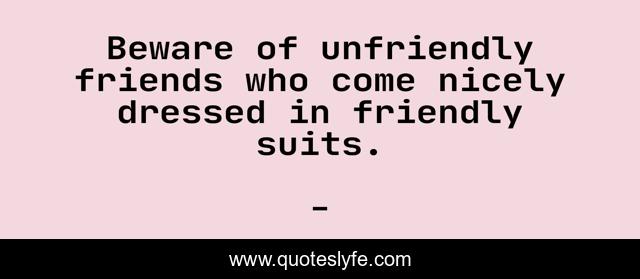 This page presents the quote "Beware of unfriendly friends who come nicely dressed in friendly suits.". Author of this quote is . This quote is about unfriendly-friends, beware-of-unfriendly-friends, edmond-mbiaka, friendly-friends, friends, friend,.
