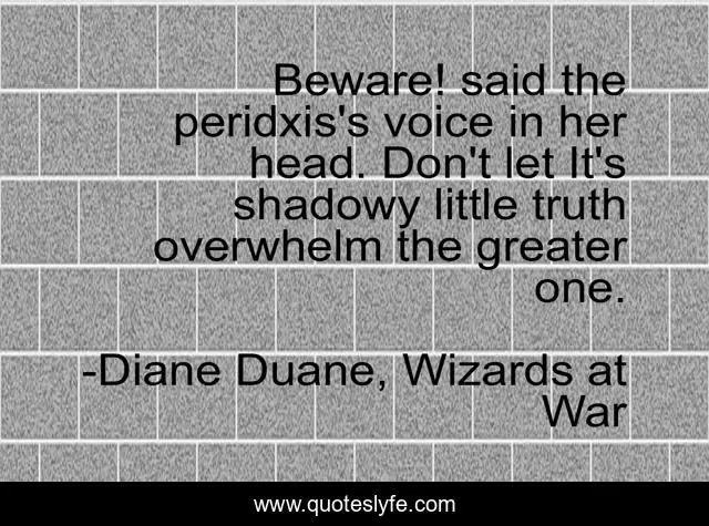 "Diane Duane, Wizards at War Quotes." Quoteslyfe.com, 2025. Sat. 06 Dec. 2025. <https://www.quoteslyfe.com/quote/Beware-said-the-peridxis-s-voice-in-10217>.