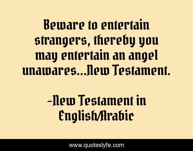 This page presents the quote "Beware to entertain strangers, thereby you may entertain an angel unawares...New Testament.". Author of this quote is New Testament in English/Arabic. .