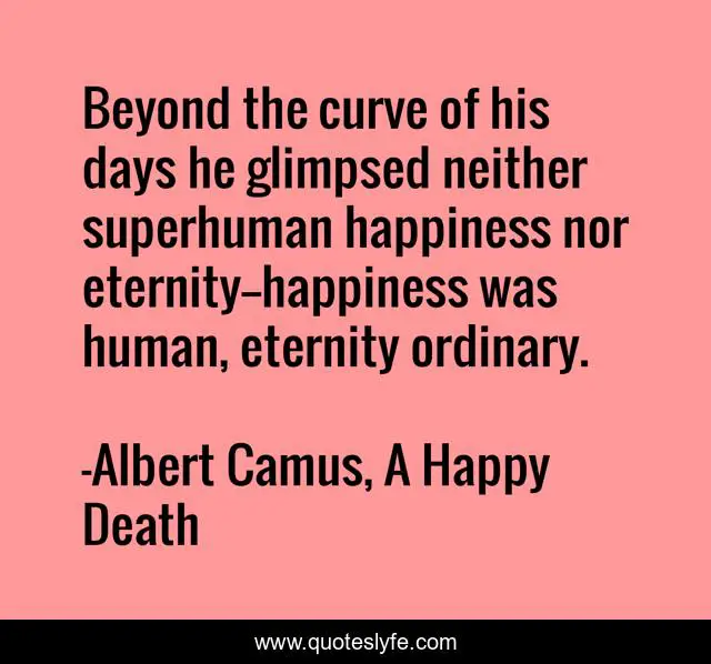 This page presents the quote "Beyond the curve of his days he glimpsed neither superhuman happiness nor eternity--happiness was human, eternity ordinary.". Author of this quote is Albert Camus, A Happy Death. This quote is about eternity, happiness, human,.