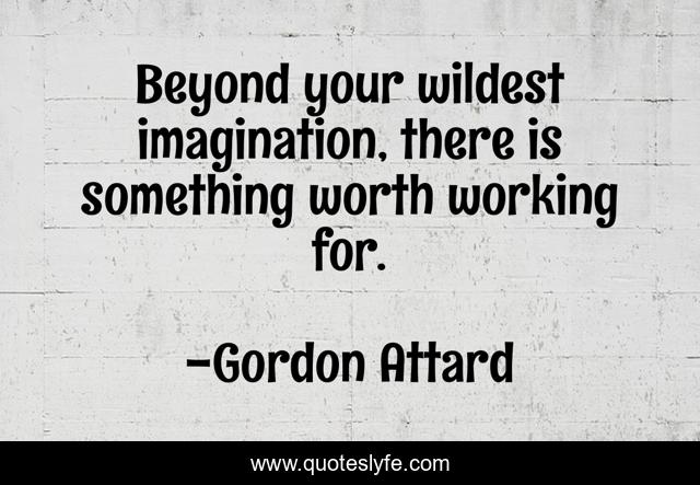 This page presents the quote "Beyond your wildest imagination, there is something worth working for.". Author of this quote is Gordon Attard. This quote is about imagination, success-self-improvement, inspirational, enthusiasm,.