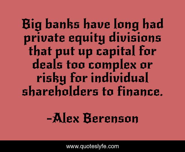 "Alex Berenson Quotes." Quoteslyfe.com, 2025. Sun. 07 Dec. 2025. <https://www.quoteslyfe.com/quote/Big-banks-have-long-had-private-equity-309326>.