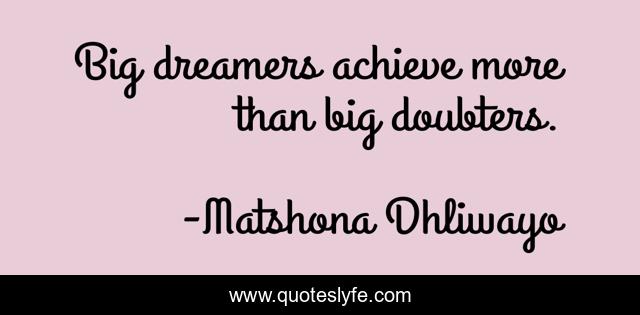 "Matshona Dhliwayo Quotes." Quoteslyfe.com, 2025. Sat. 06 Dec. 2025. <https://www.quoteslyfe.com/quote/Big-dreamers-achieve-more-than-big-doubters-83768>.