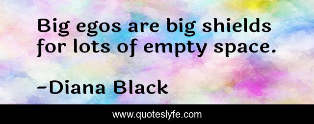 This page presents the quote "Big egos are big shields for lots of empty space.". Author of this quote is Diana Black. This quote is about self, confidence,.