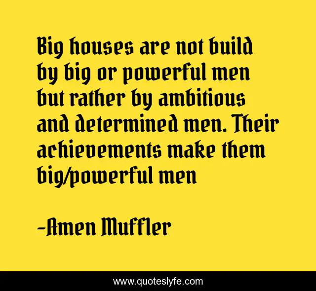 This page presents the quote "Big houses are not build by big or powerful men but rather by ambitious and determined men. Their achievements make them big/powerful men". Author of this quote is Amen Muffler. This quote is about ambition, ambitions, achievement, hard-work, hard-work-pays-off-dreams,.