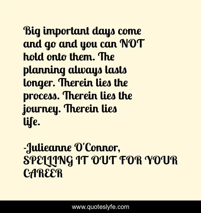 "Julieanne O'Connor, SPELLING IT OUT FOR YOUR CAREER Quotes." Quoteslyfe.com, 2025. Fri. 05 Dec. 2025. <https://www.quoteslyfe.com/quote/Big-important-days-come-and-go-and-49786>.