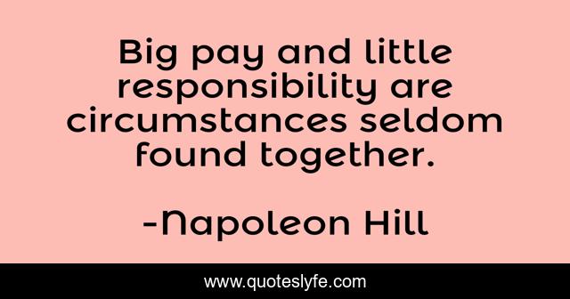 This page presents the quote "Big pay and little responsibility are circumstances seldom found together.". Author of this quote is Napoleon Hill. This quote is about responsibility, together,.