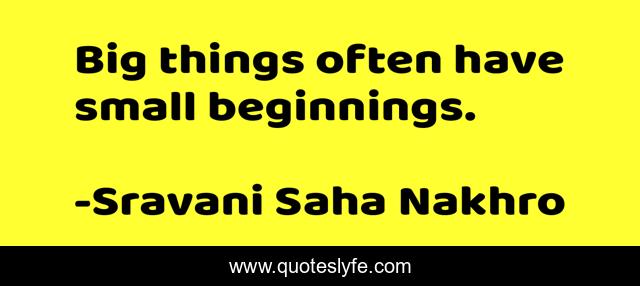"Sravani Saha Nakhro Quotes." Quoteslyfe.com, 2025. Mon. 08 Dec. 2025. <https://www.quoteslyfe.com/quote/Big-things-often-have-small-beginnings-32855>.