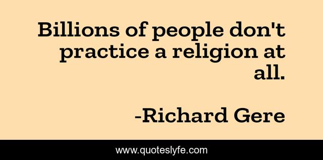 This page presents the quote "Billions of people don't practice a religion at all.". Author of this quote is Richard Gere. This quote is about practice, billions, people,.