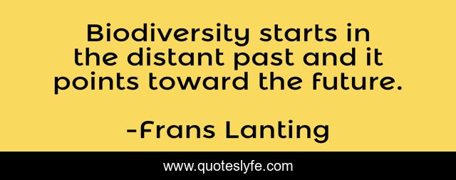 This page presents the quote "Biodiversity starts in the distant past and it points toward the future.". Author of this quote is Frans Lanting. This quote is about past, biodiversity, toward,.
