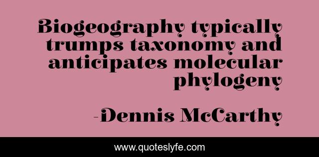 "Dennis McCarthy Quotes." Quoteslyfe.com, 2025. Sat. 06 Dec. 2025. <https://www.quoteslyfe.com/quote/Biogeography-typically-trumps-taxonomy-and-anticipates-molecular-249993>.