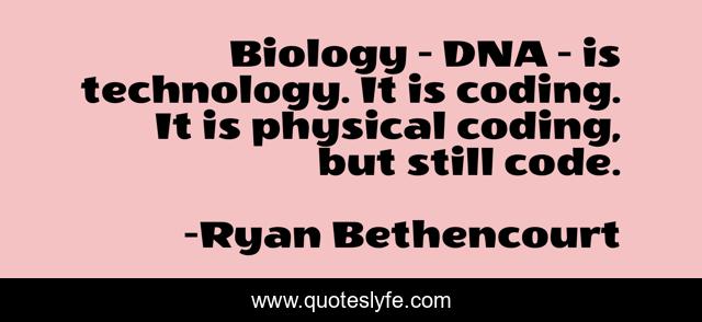 This page presents the quote "Biology - DNA - is technology. It is coding. It is physical coding, but still code.". Author of this quote is Ryan Bethencourt. This quote is about biology, still, dna,.