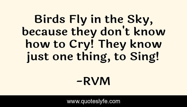 This page presents the quote "Birds Fly in the Sky, because they don't know how to Cry! They know just one thing, to Sing!". Author of this quote is RVM. This quote is about motivation, inspiration,.