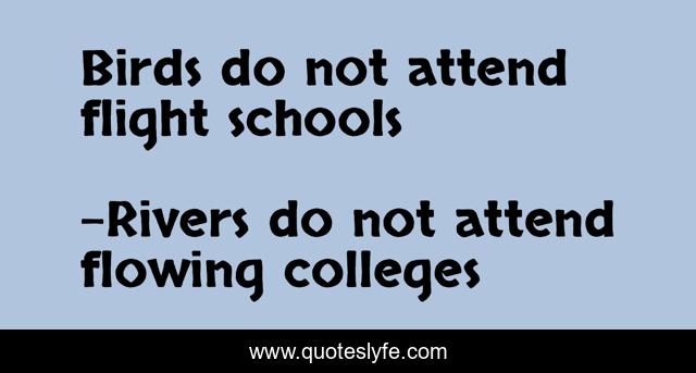 "Rivers do not attend flowing colleges Quotes." Quoteslyfe.com, 2025. Sat. 06 Dec. 2025. <https://www.quoteslyfe.com/quote/Birds-do-not-attend-flight-schools-203344>.