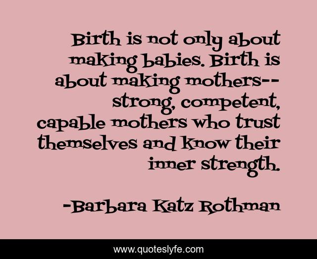 "Barbara Katz Rothman Quotes." Quoteslyfe.com, 2025. Fri. 05 Dec. 2025. <https://www.quoteslyfe.com/quote/Birth-is-not-only-about-making-babies-246887>.