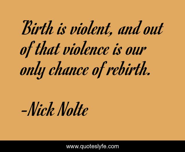 This page presents the quote "Birth is violent, and out of that violence is our only chance of rebirth.". Author of this quote is Nick Nolte. This quote is about rebirth, violence, birth,.