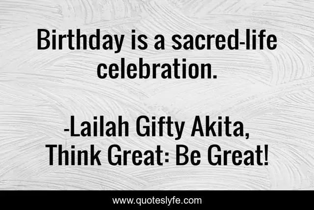 "Lailah Gifty Akita, Think Great: Be Great! Quotes." Quoteslyfe.com, 2025. Sat. 06 Dec. 2025. <https://www.quoteslyfe.com/quote/Birthday-is-a-sacred-life-celebration-97213>.
