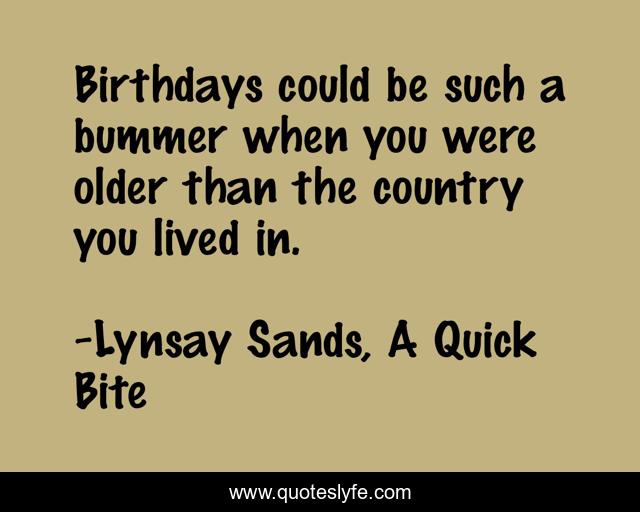 "Lynsay Sands, A Quick Bite Quotes." Quoteslyfe.com, 2025. Fri. 05 Dec. 2025. <https://www.quoteslyfe.com/quote/Birthdays-could-be-such-a-bummer-when-3034>.