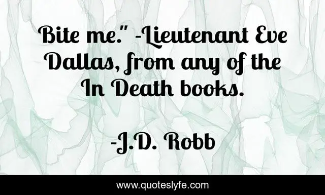 "J.D. Robb Quotes." Quoteslyfe.com, 2025. Mon. 08 Dec. 2025. <https://www.quoteslyfe.com/quote/Bite-me-Lieutenant-Eve-Dallas-from-any-17822>.