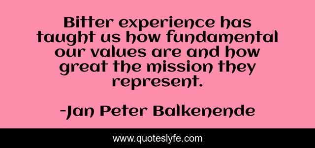 This page presents the quote "Bitter experience has taught us how fundamental our values are and how great the mission they represent.". Author of this quote is Jan Peter Balkenende. This quote is about great, values, mission,.