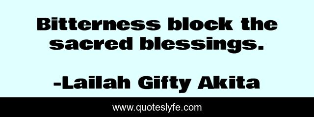 "Lailah Gifty Akita Quotes." Quoteslyfe.com, 2025. Fri. 05 Dec. 2025. <https://www.quoteslyfe.com/quote/Bitterness-block-the-sacred-blessings-140283>.