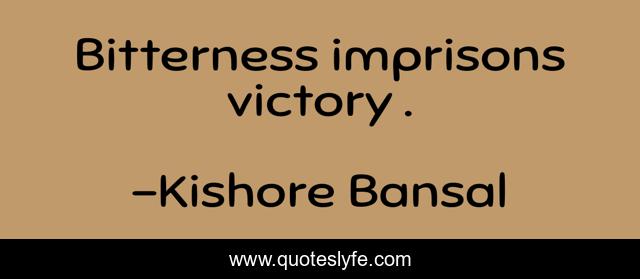 This page presents the quote "Bitterness imprisons victory .". Author of this quote is Kishore Bansal. This quote is about imprisons, victory, bitterness,.