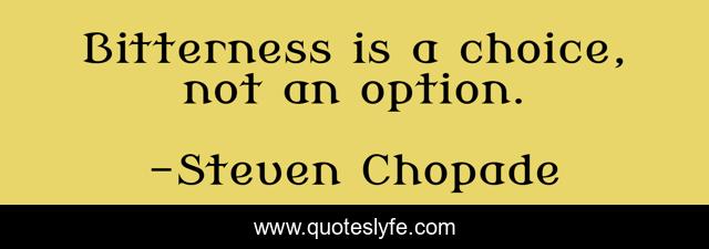 "Steven Chopade Quotes." Quoteslyfe.com, 2025. Sat. 13 Dec. 2025. <https://www.quoteslyfe.com/quote/Bitterness-is-a-choice-not-an-option-181858>.