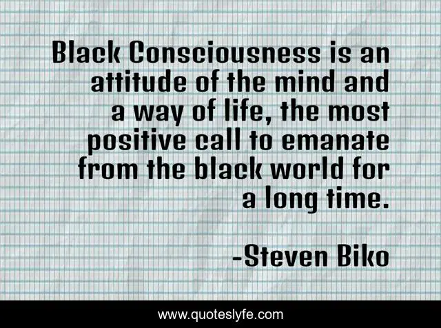 "Steven Biko Quotes." Quoteslyfe.com, 2025. Mon. 08 Dec. 2025. <https://www.quoteslyfe.com/quote/Black-Consciousness-is-an-attitude-of-the-282287>.