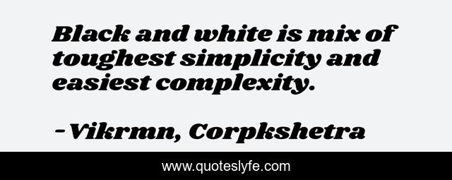 This page presents the quote "Black and white is mix of toughest simplicity and easiest complexity.". Author of this quote is Vikrmn, Corpkshetra. This quote is about black-white, corpkshetra, simple, black-and-white, colors, optimistic, vv, confidence, positive,.